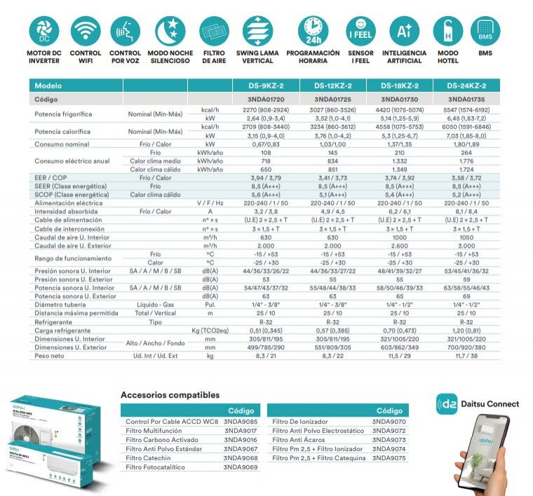Aire Acondicionado Split 1x1 DAITSU DS-18KZ-2 IA WIFI A+++ 4400 FRIO 4600 CALOR, INTELIGENCIA ARTIFICIAL A+++/A+++, 3 años garantia total. tranporte incluido Peninsula, Baleares y Canarias.